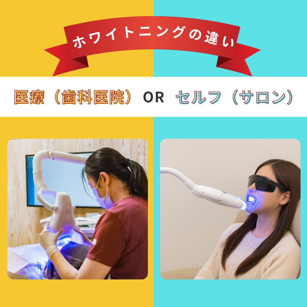 一口に「ホワイトニング」と言っても、実は医療機関で行うものとセルフサロンで行うものでは、使用できる薬剤や効果の範囲が大きく異なります。