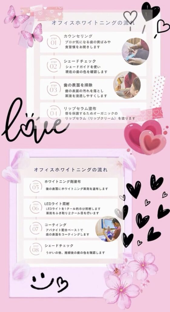 みやもと歯科では、安心して施術を受けていただけるよう、丁寧なカウンセリングと段階的なプロセスでホワイトニングを行っております。初めての方でも不安なくご利用いただけます。