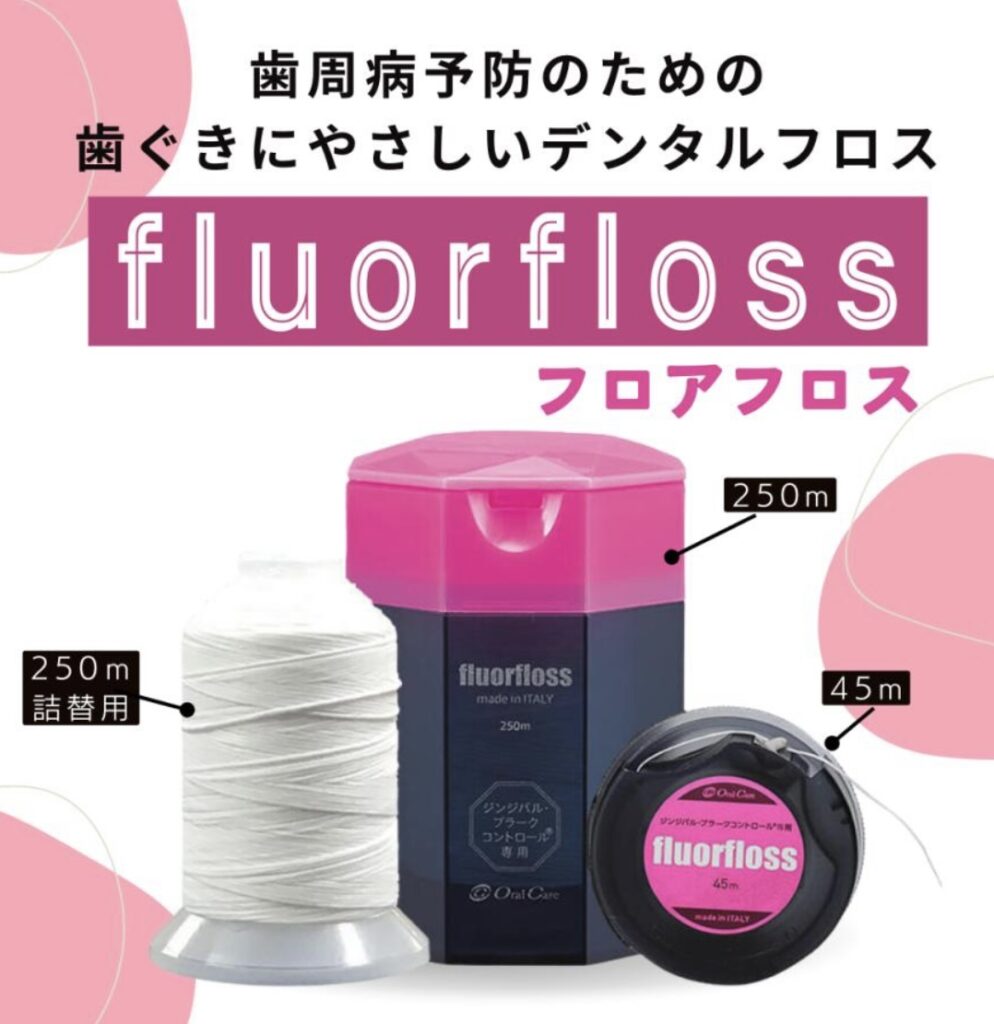 みやもと歯科では、歯ぐきにやさしく、歯周病予防にも効果的なイタリア製「フロアフロス(fluorfloss)」 をおすすめしています。