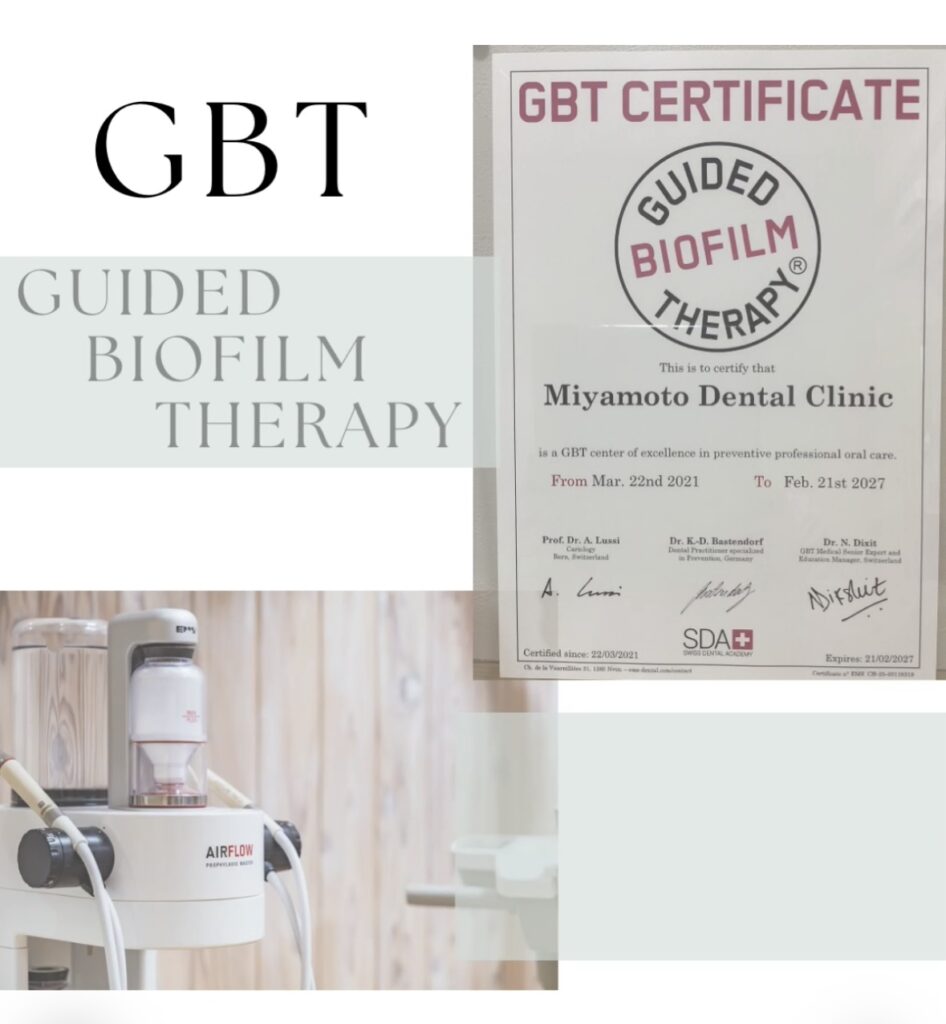 みやもと歯科は、スイスEMS社が提唱する**Guided Biofilm Therapy(ガイデッド・バイオフィルム・セラピー:GBT)の認定施設です。