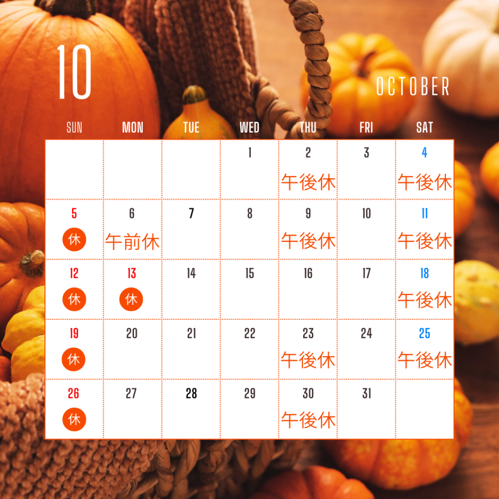 10月の休診日のお知らせ