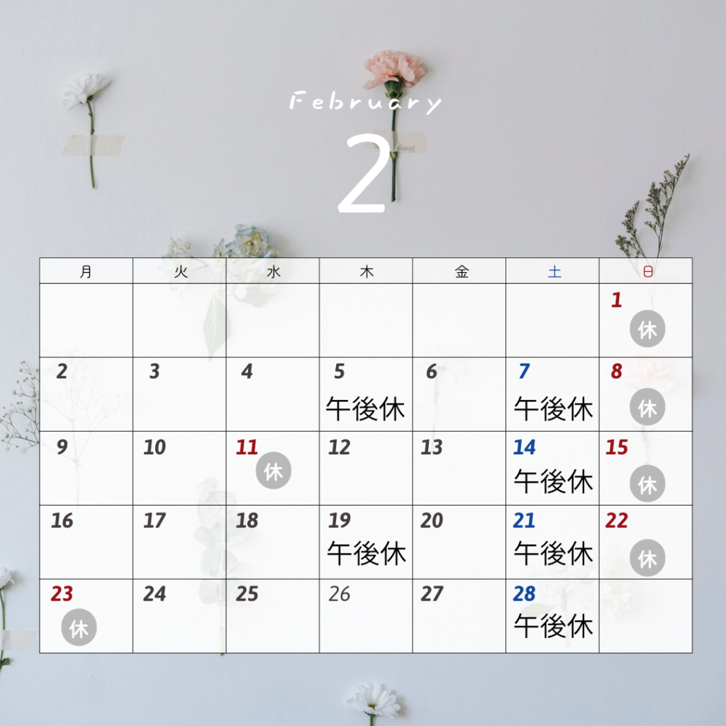 2月の診療日と休診日のお知らせ