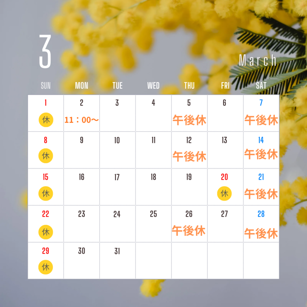 3月の診療日と休診日のお知らせ📢